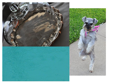 Gracyn entertains us with her imitation of a circus dog. Sunday brings a light thunderstorm, and I add a touch of nostalgia to the thrift-store dome by tying my great-grandmother's heart pendant to the handle.